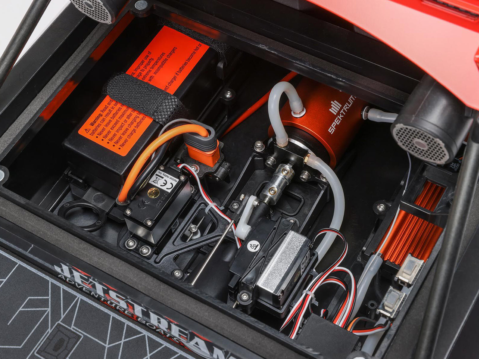 Stem to stern, the 24-inch Jetstream is engineered to outmatch any other RC boat that tries to do the same feats. The jet pump propulsion system's reverse gate is just one example. Use it to back your Jetstream off a trailer or as a quick braking function out on the water. It's one of many features that perfectly capture the scale look and feel of a full-size boat.