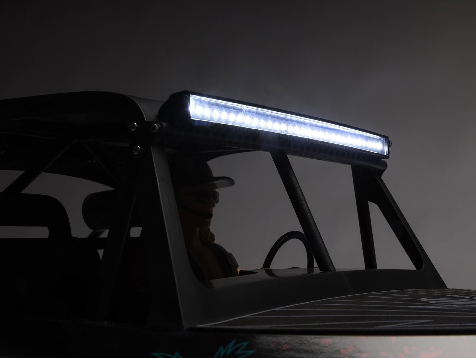 Choose from two officially licensed liveries for your Jetstream. One reproduces the awesome Blake Wilkey Death Boat. The other has the custom, high-impact graphics of the MoJo H2O livery. Check out all the realistic details included with both — roll cage, full cockpit, steering wheel, simulated speakers, and more. You can easily turn on or off the front and rear LED lighting bars, and position the pilot figure (also inspired by Mini Boat Mafia's Blake Wilkey) in casual or driving poses. It all adds up to give your Jetstream the raddest scale looks in RC boating.