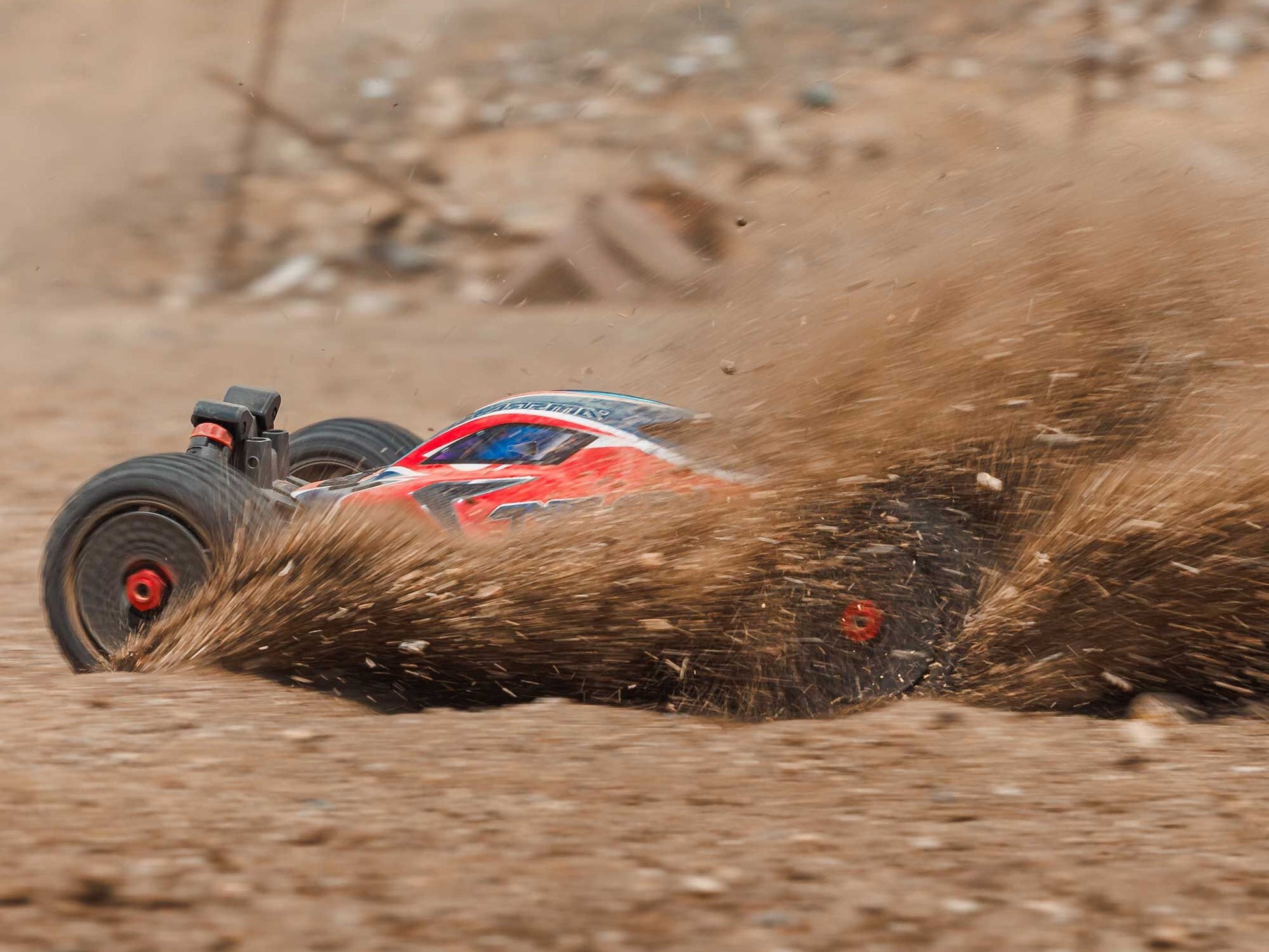 ARRMA developed the 223S series especially for brushless bashing newcomers who want to grow from 2S to 3S power without adding expensive upgrades or buying a whole new vehicle. On a 2S LiPo the TYPHON 223S BLX reaches 35+ mph top speeds, matching or beating the best that other manufacturers’ 2S bashers can do. Whenever you’re ready, plug in a 3S battery. Now you can unleash the buggy’s full 50+ mph potential!