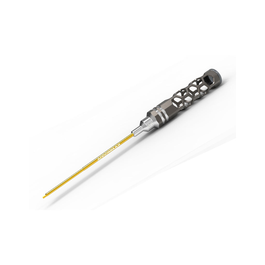 A sharp metal titanium colour anodised hollow aluminium handle, lightweight non-slip hollow, hard adodized with size indication rings. Machined special spring steel for long life and excellent torsion. Sturdy and convenient to use, the tips securely lock the screw in its place. Amuninium handle end caps, that rotate in the palm of your hand for comfort and control. Inch and metric hex and ball hex drivers. Inch and metric socket drivers.