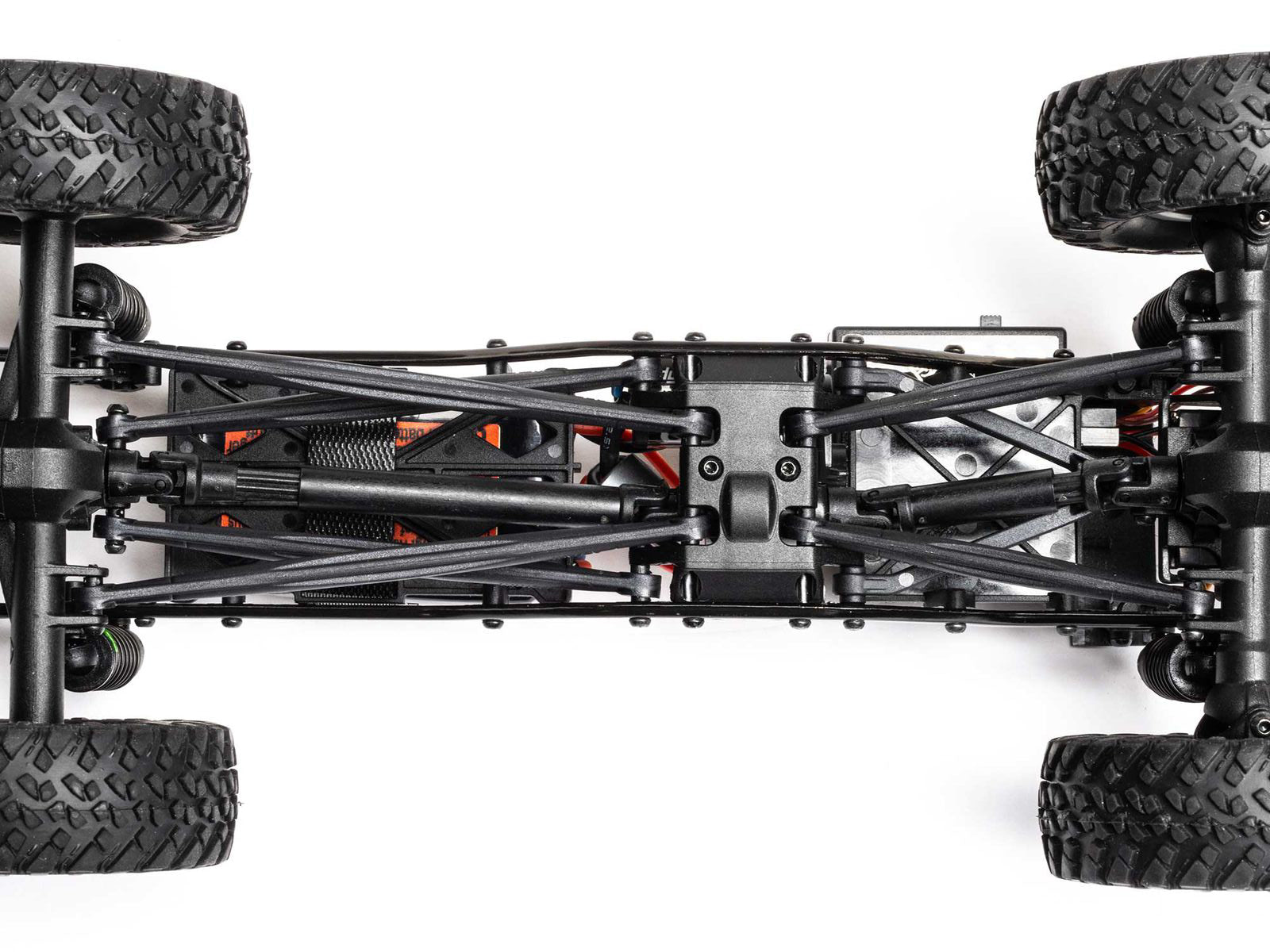 And the SCX24 Jeep Gladiator still has all the performance advantages of the proven Axial SCX24 platform. Full-time 4WD and a 3-link front/4-link rear suspension let you muscle over big challenges. Worm gears on the axles increase the ground clearance. Realistic steel frame rails on the C-channel chassis stand up to hard knocks.