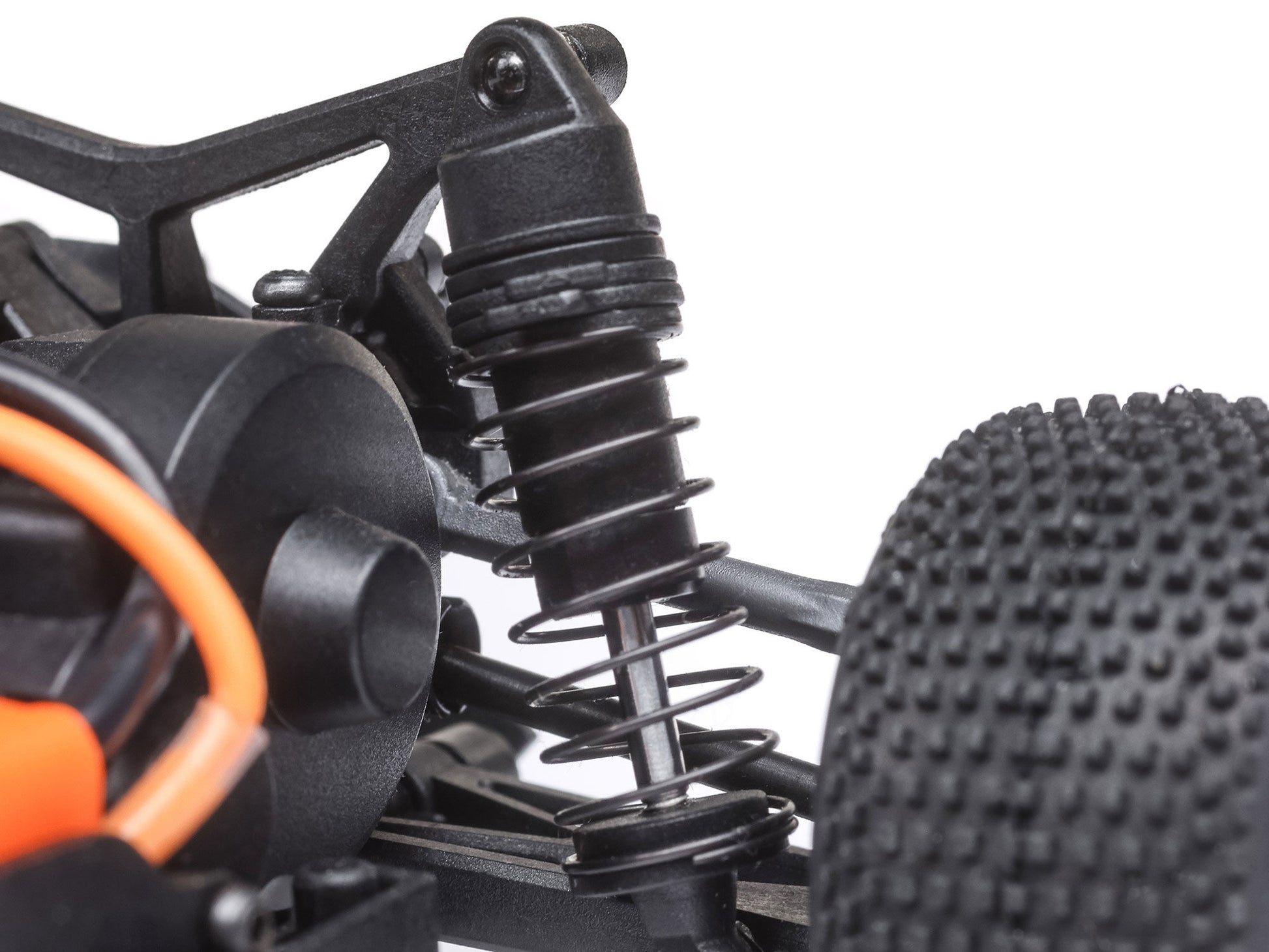 With a design inspired by a Team Losi Racing (TLR) 2023 IFMAR World Champion, the Losi Micro-T proves that big performance can come in conveniently small packages. For example, Losi has the only micros in the industry with an aluminium chassis. Its front caster kick and side bends create a strong and rigid foundation to withstand jumps with ease. Tunable, oil-filled shocks are included for optimal handling.