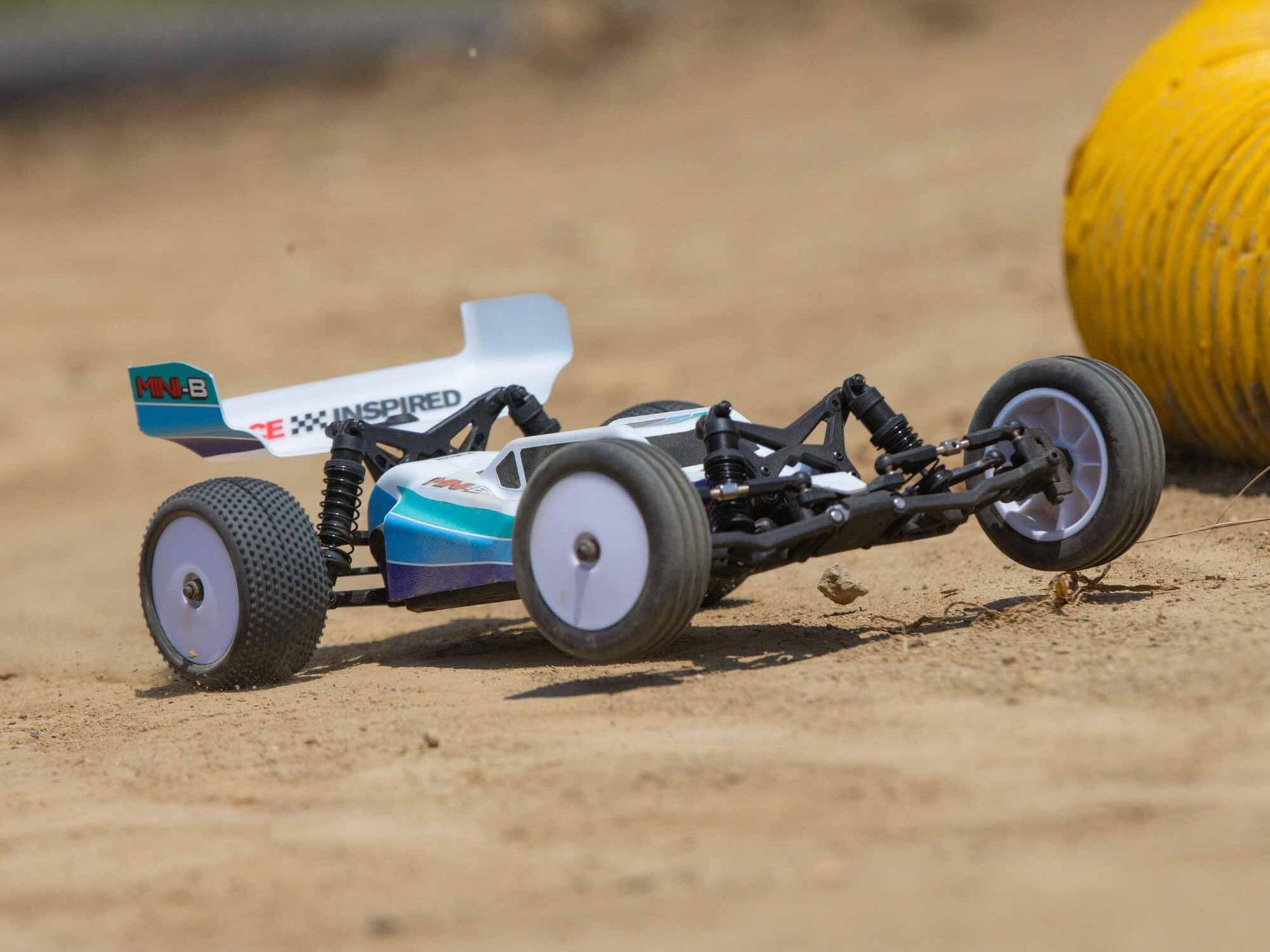 Straight out of the box, the Mini-B brushless is completely assembled and ready-to-run with everything you'll need to hit the track. Though mini in size, the Mini-B offers the performance capabilities of larger RC racing buggies. Its efficient 2-in-1 brushless motor and ESC system can send it at 30 mph speeds on the back straight, complementing its predictable handling with the power to dive into a corner to make a pass and hit the jumps consistently. The Mini-B offers the durability to withstand crash impacts with other competitors. And with a suspension inspired by the prestigious TLR 22 — a vehicle often seen on the podium at the most competitive 1/10 scale buggy races — the Mini-B handles like a high-end machine, agile in the corners and easy to jump.