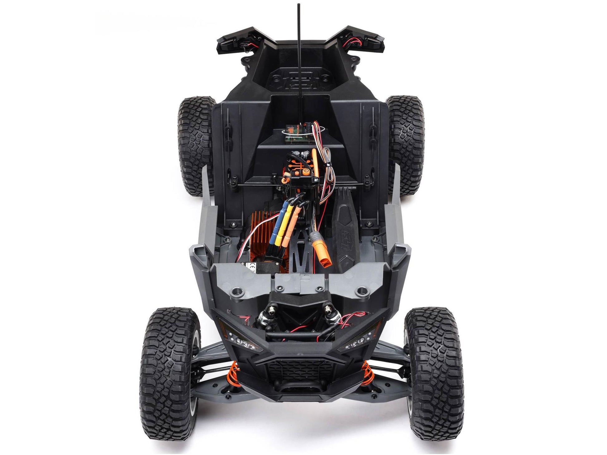 Factory-assembled and ready-to-run, the Losi Polaris RZR Pro R duplicates the looks of the full-size side-by-side with moulded body panels, a roll cage, and officially licensed BFGoodrich KM3 tyres on Raceline A93 Podium wheels. Losi includes a Spektrum brushless power system that handles a 2S or 3S LiPo battery (not included) and delivers top speeds above 45+ mph.