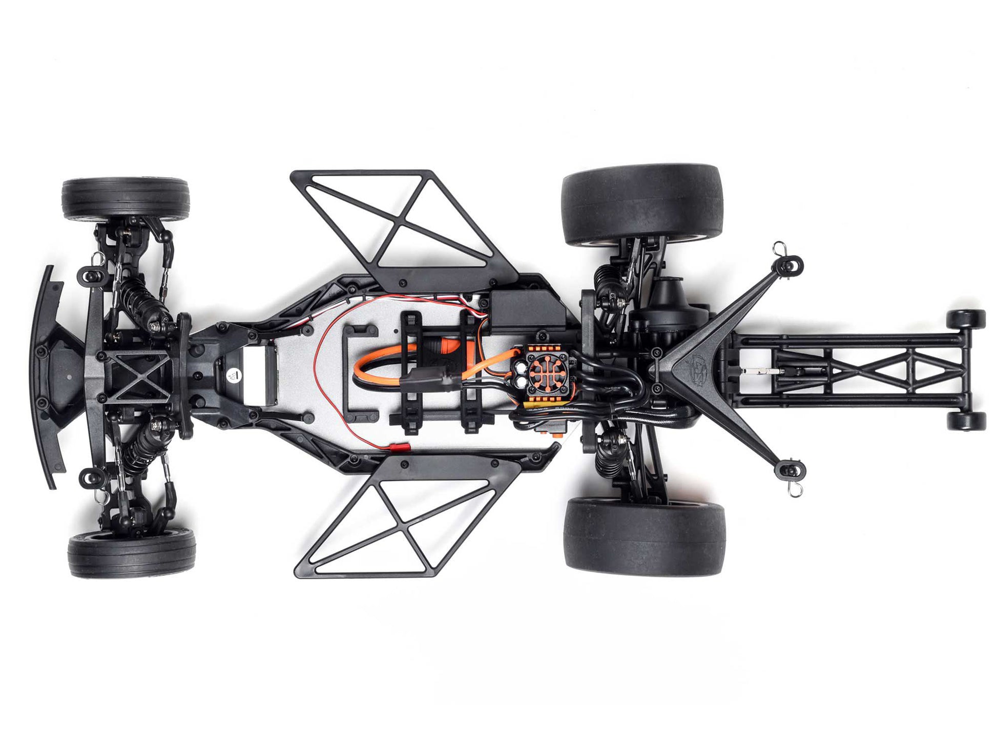Setting the standard in the industry for years, the Losi® 1968 Ford F100 No Prep Drag Racing Truck is the most competitive No Prep Drag Racing Ready-to-Run. With the popularity of No Prep Drag Racing exploding, Losi has once again taken it to the next level with a truly innovative design and the quality workmanship drivers expect. The Ford F100 has been carefully crafted to give a classic look while still fitting into the rules and regulations set by the No-Prep Drag Racing scene. It has all the advantages of an aluminium chassis such as electronics protection, side impact guards, and a clean wire management system with plenty of 22S option parts. It's designed with racers in mind with many outstanding features including officially licensed Mickey Thompson tyres, limited travel oil filled front and rear shocks, low center of gravity rear shock tower, extended body mounts, optional heavy duty sway bar, adjustable weight front bumper, elevated transmission, adjustable turnbuckles, and a fully adjustable wheelie bar. You get an all-metal gear transmission for concrete dependability along with a Spektrum™ SLT3 transmitter and dual protocol receiver, Spektrum Firma™ 100 amp Smart ESC, and Spektrum Firma 6500kv brushless motor. From its rugged body to state-of-the-art electronics, everything about the Losi 1968 Ford F100 No Prep Drag Racing Truck is ready for blazing down the blacktop.