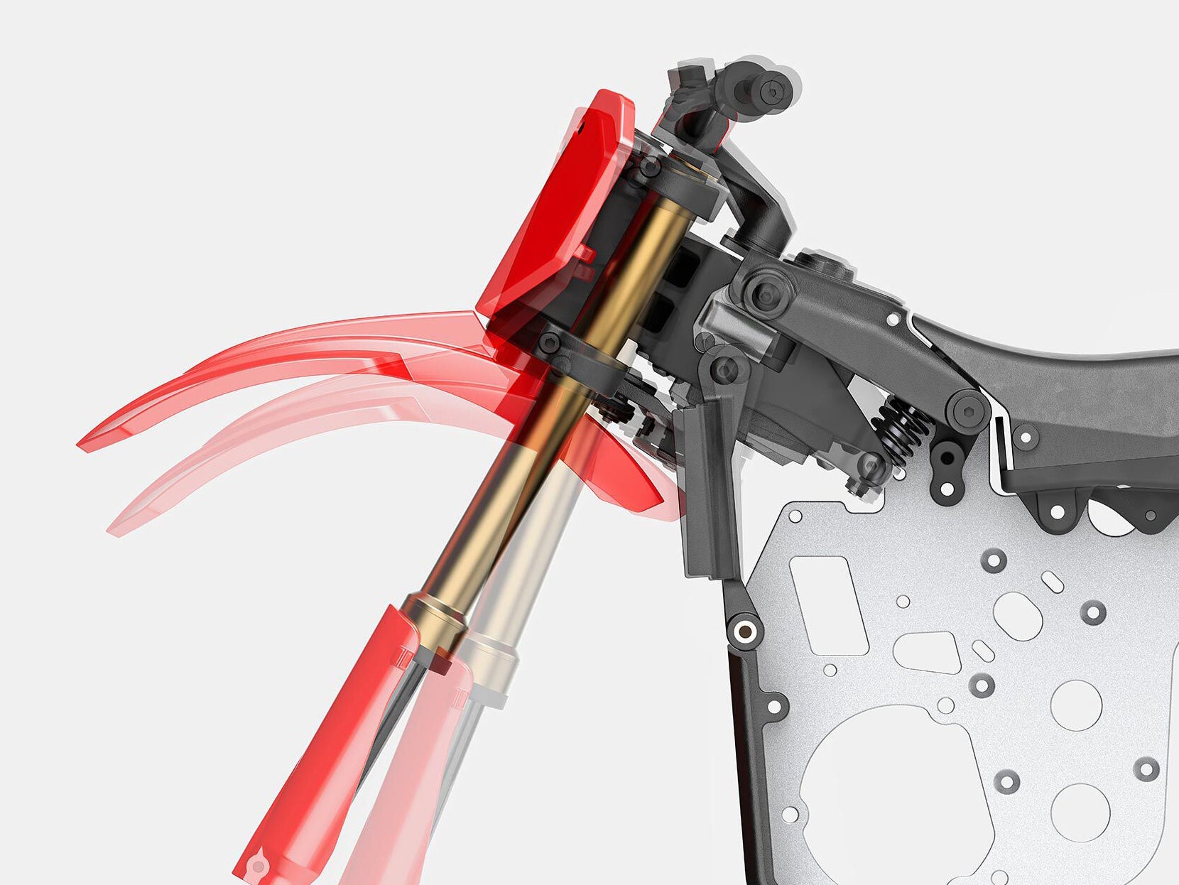 The unprecedented realism of the Promoto-MX goes much deeper than its faithfully detailed looks — the narrow frame, rider gear, and officially licensed graphics. Even more impressive is how successfully it captures true dirt bike performance, a breakthrough accomplished through a unique hybrid of mechanical and electronic technology developed specifically for the Promoto-MX. It's how these technologies work together that makes all the difference.