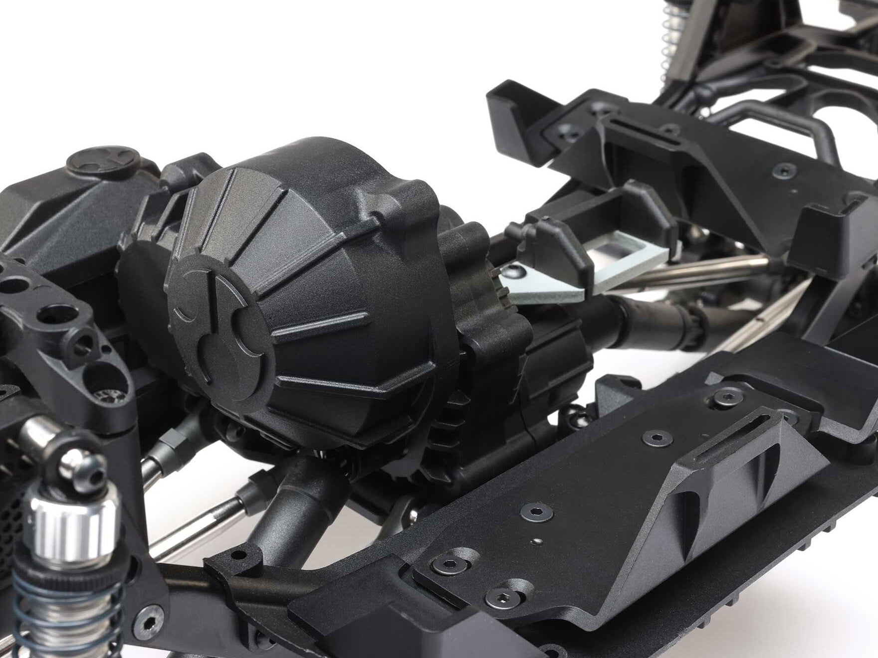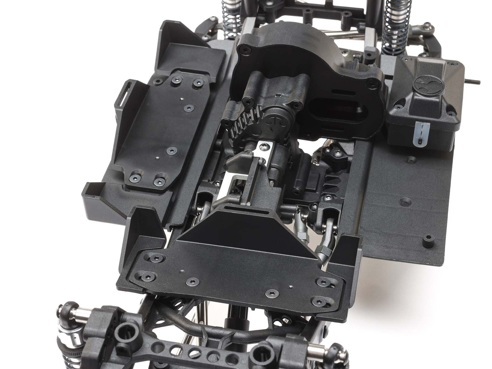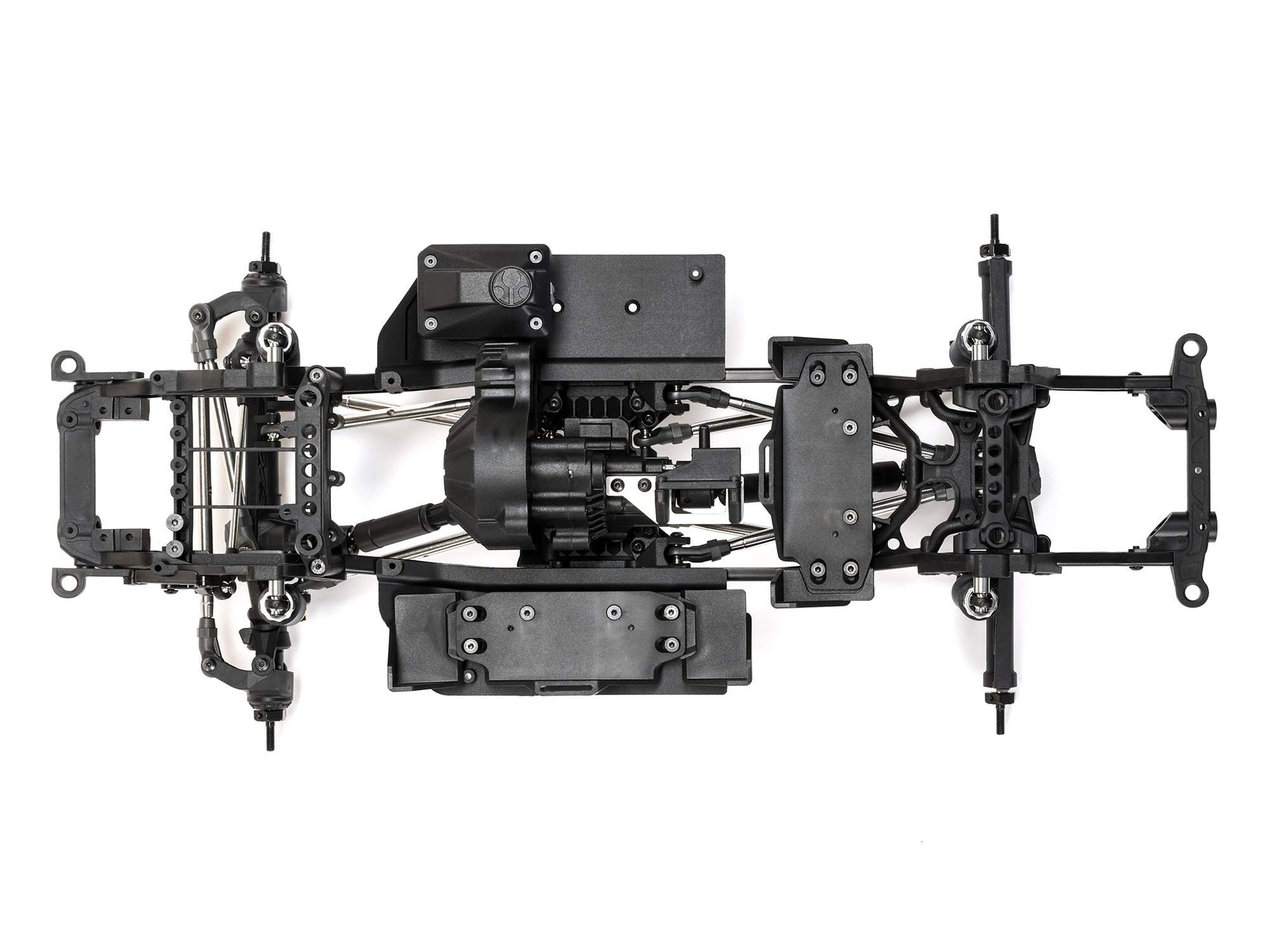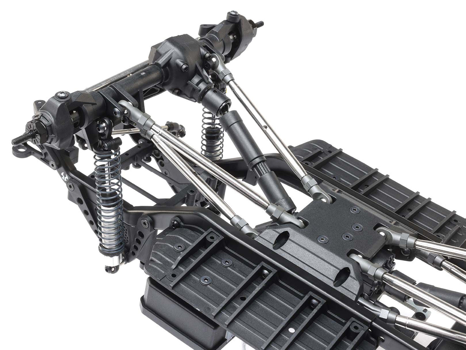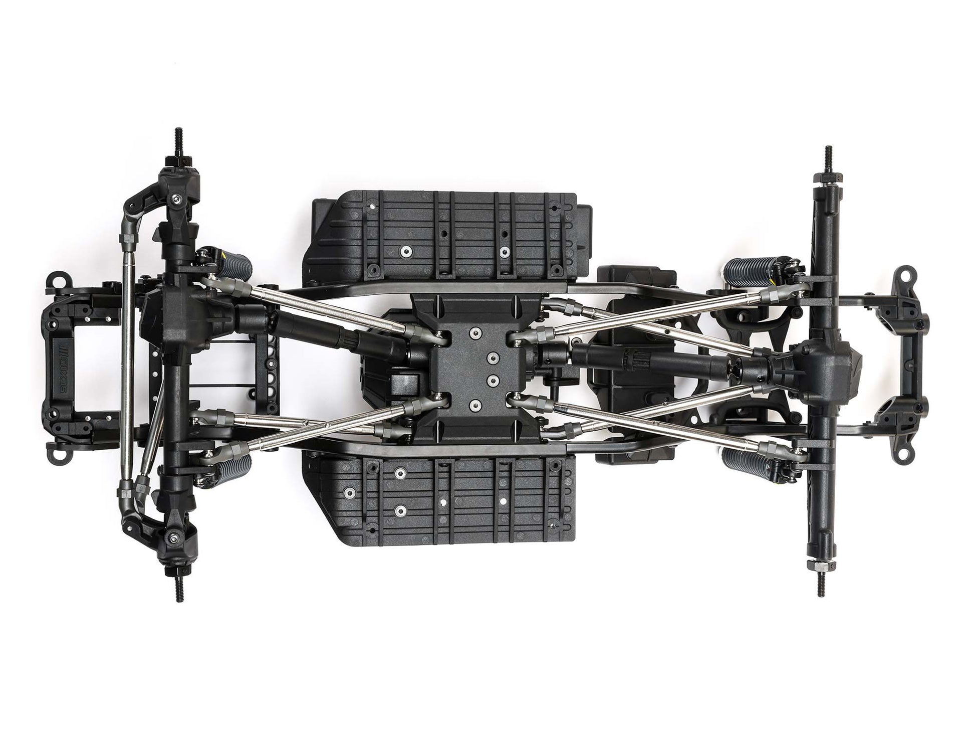 - Strong, adjustable SCX10 III steel C-channel chassis