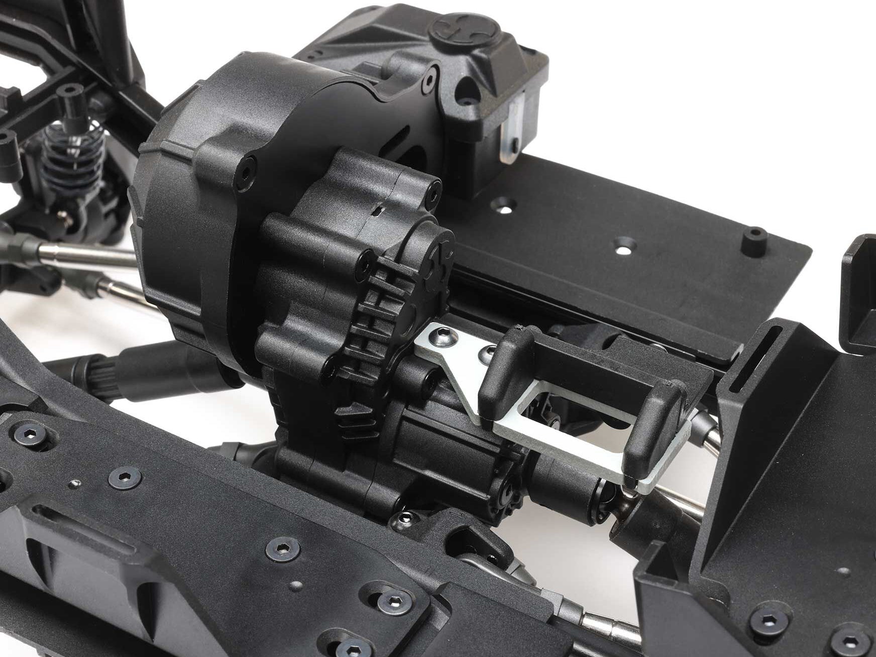Better still, the Base Camp Kit isn't just an unassembled version of the Axial RTR rig. It's an improved Base Camp. The transmission can be externally locked in standard 4WD, but it also has an optional, servo-actuated dig feature. Robust 6mm stainless steel links are included, as well as Standard AR45 straight axles. If you prefer portal axles, the LCXU transmission makes it easy to switch.