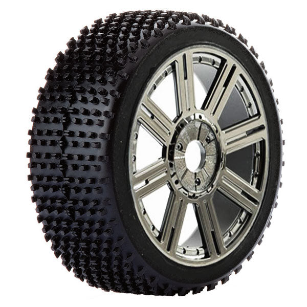Suitable for all 1/8 off road buggy applications with 17mm hex adaptors. Available in white dished and black chrome. Sold as pair.