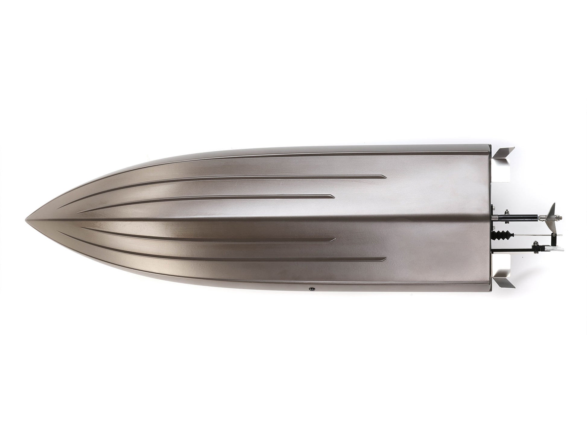 Its V-hull design knifes cleanly through the water for a smooth ride even in rough conditions. The included brushless power system features the Spektrum 2300Kv Brushless Outrunner Marine Motor paired with a 100A Spektrum Brushless ESC. Together, they can produce 35+ mph of wake-inducing action.