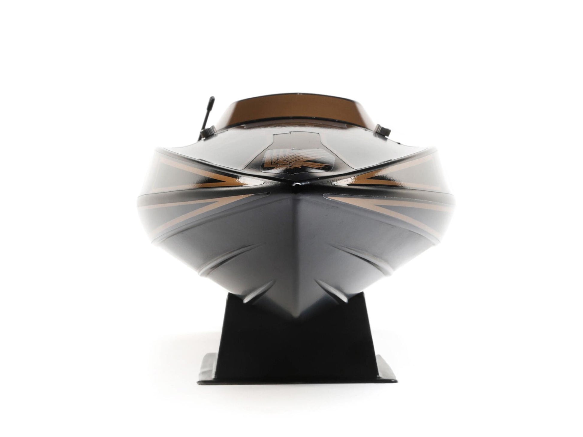 The motor also features an integrated weight on the outrunner, eliminating the need for a weighted coupler to provide self-righting capabilities. No more worries about a wipeout in the middle of the lake. With one press on the self-righting button of the included, custom-programmed Spektrum SLT3 radio transmitter, your deep-V will flip back upright. This design is unique to the Recoil 2 V2. No other boat has it!