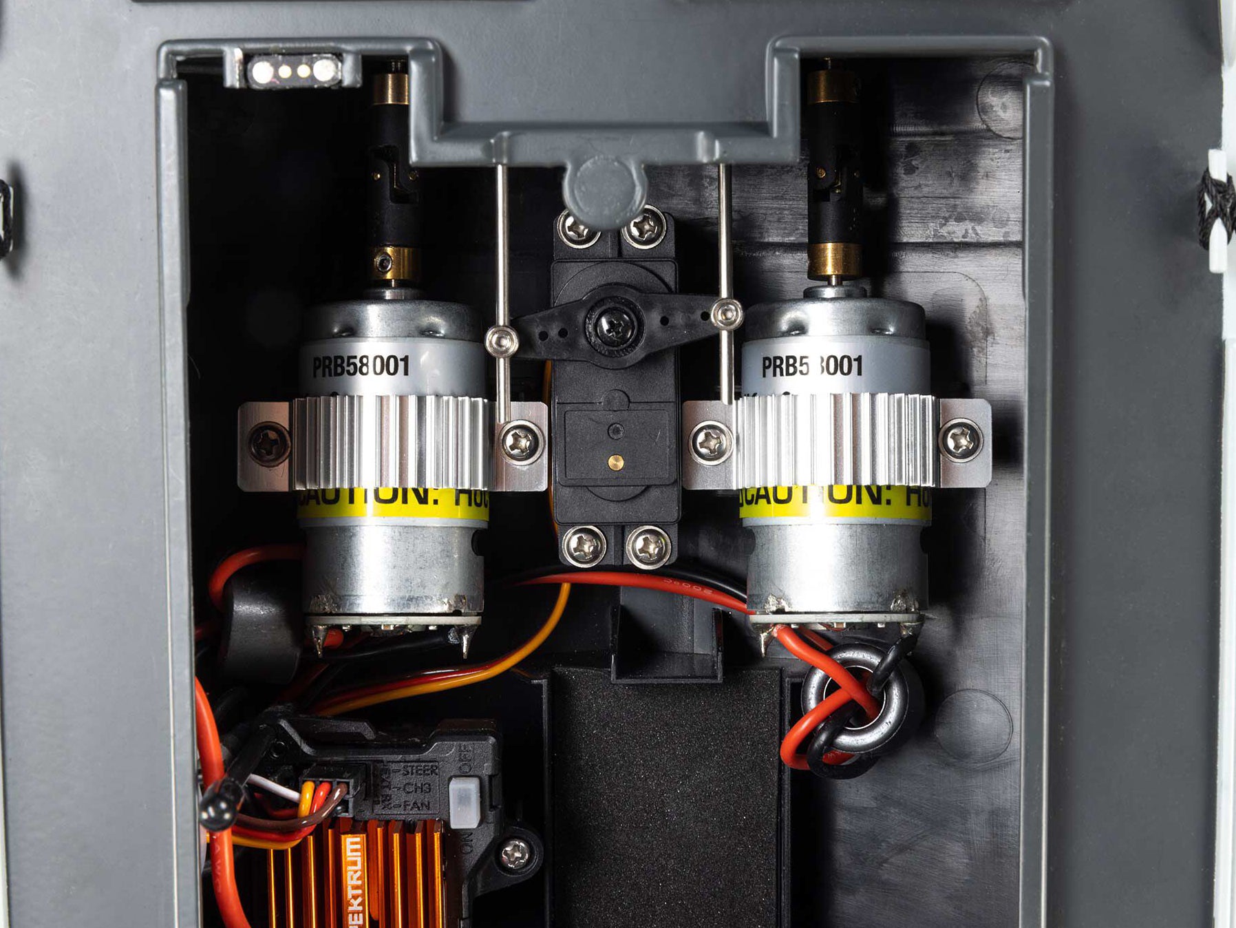 Though detailed enough to simply enjoy on display, the Pro Boat PCF Mark I is also equipped to execute daring missions at your local lake or pond. Two 390 brushed motors with aluminium heatsinks supply the muscle to move easily at scale speeds and maneuver with finesse. The included Spektrum SLT3 radio and 40-amp ESC/RX 2-in-1 provide dependable control of the on-board electronics — and let you operate the boat's LED lights right from the transmitter.
