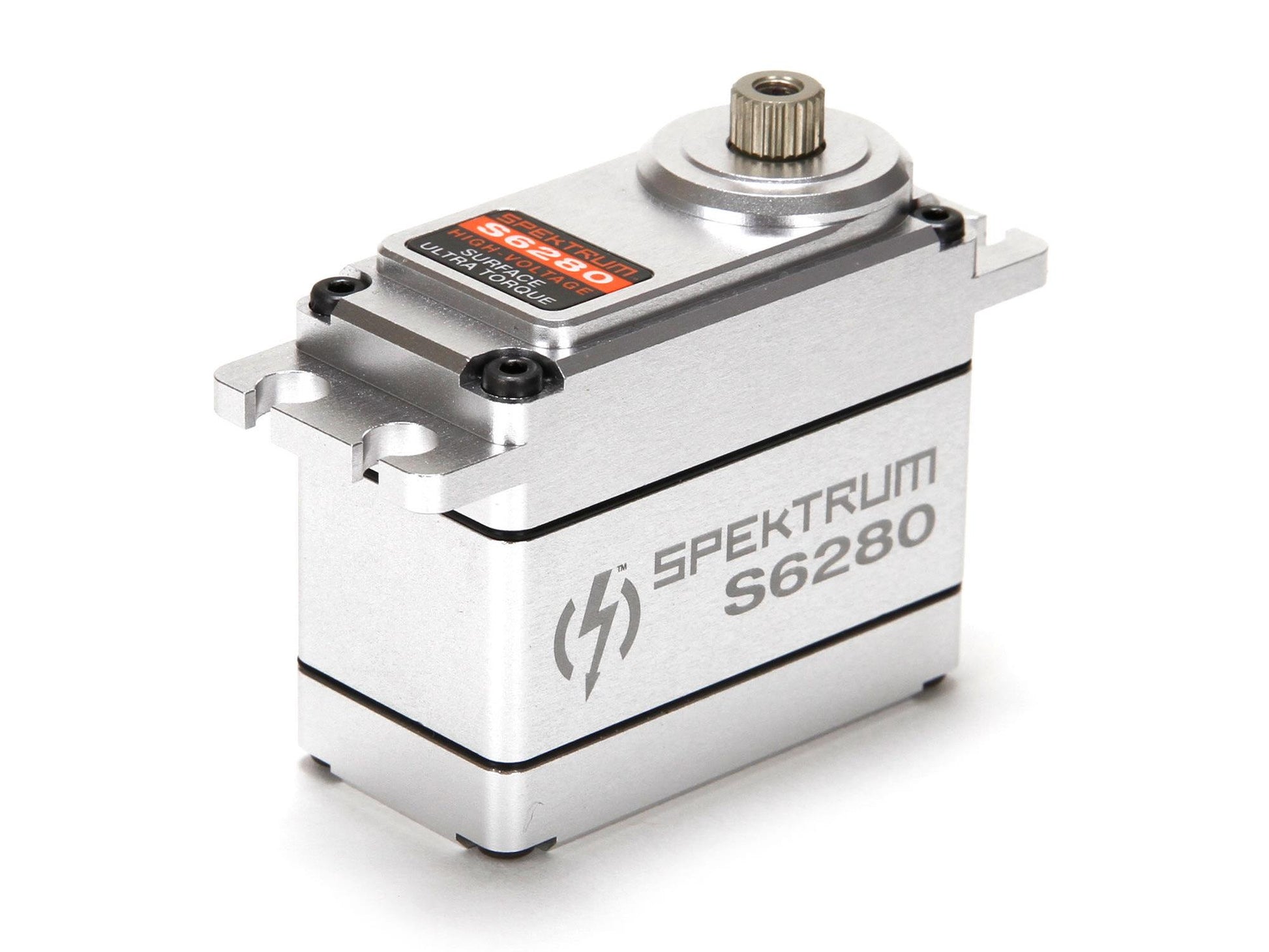 The latest generation of Spektrum surface servos provides you with the performance you need for any 1/10th to 1/8th scale vehicle application. The S6230 and S6240 offer high-torque or high-speed performance in a more compact size for 1/10th scale crawlers or monster trucks where space is limited. The S6250 HV and S6260 HV are standard size servos for High-Voltage applications up to 8.4V, And the S6280 HV and S6290 HV feature all metal case construction for the ultimate 1/8th scale performance. All these servos feature Spektrum innovations like the removable wire leads that allow for custom lead length and ease of maintenance and all metal servo mounting tabs to keep them in place through the most extreme conditions.