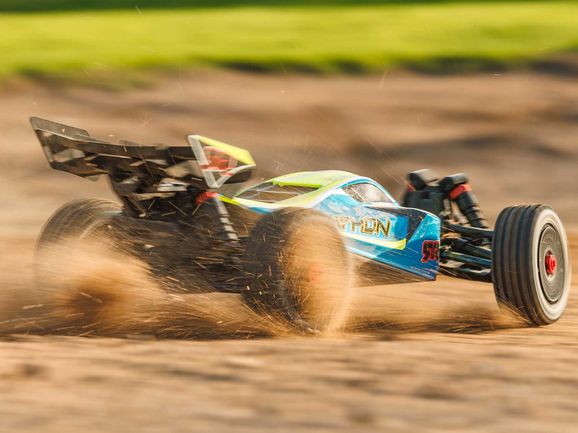 With a low center of gravity, high-downforce wing, wide arms, and multi-surface wheels and tyres, the TYPHON MEGA has proven to be the ideal platform for easing your way into aggressive 1/8 scale bashing. Super-durable and easy to handle, it lets you tackle a larger size and faster speeds with complete confidence.