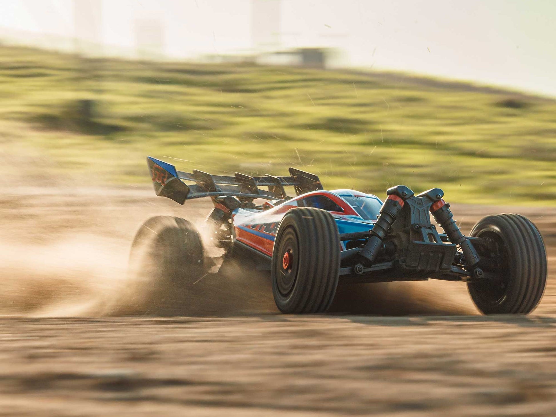 With a low center of gravity, high-downforce wing, wide arms, and multi-surface wheels and tyres, the TYPHON MEGA has proven to be the ideal platform for easing your way into aggressive 1/8 scale bashing. Super-durable and easy to handle, it lets you tackle a larger size and faster speeds with complete confidence.