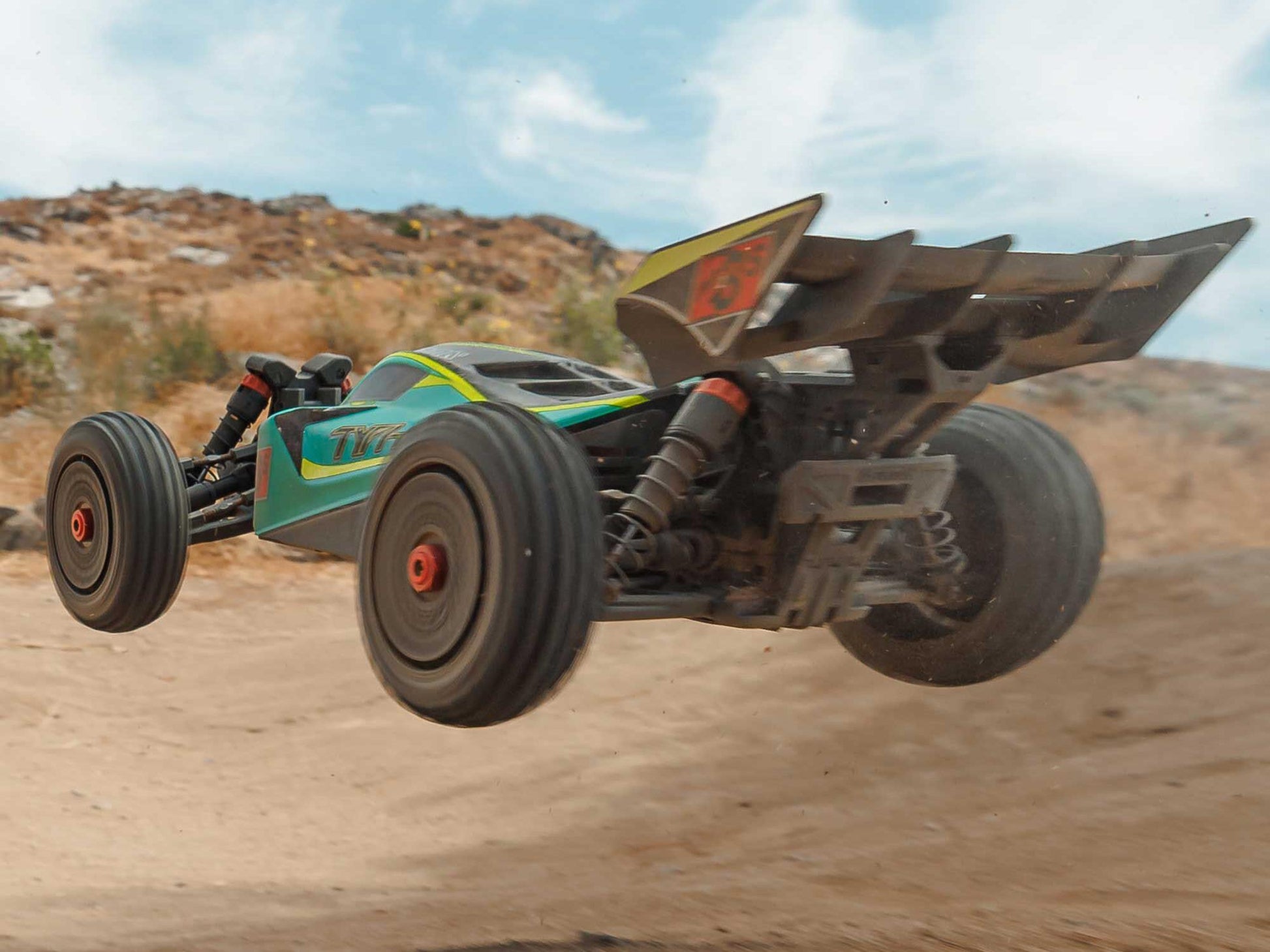 Moving up to high-speed, brushless 1/8 scale buggy bashing is easy when you choose the TYPHON 223S BLX 4X4 Race Buggy. The TYPHON 223S BLX has everything you’re looking for - aggressive styling, ready-to-run simplicity, unmatched durability, and premium performance - all at a price you can afford.