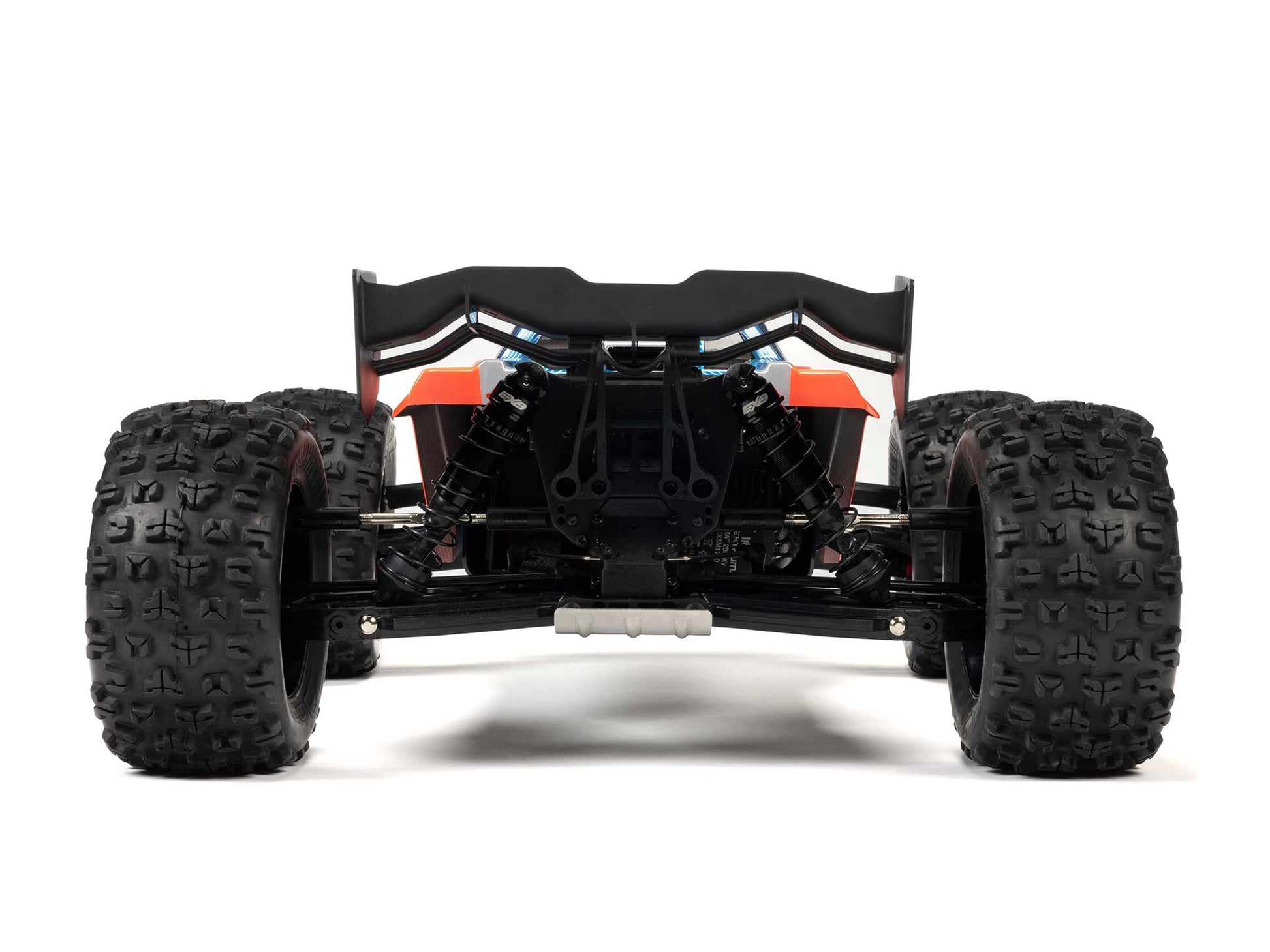 The chassis plate, differentials, front bumper, skid plate, and even the wing mount have all been improved with EXB (Extreme Bash) toughness. New side guards, a two-piece tower-to-tower brace, and inner body tower add more strength and simplify maintenance. The iconic KRATON monster truck body now comes in two striking new multi-colour factory finishes, and has a convenient, quick-release, clipless body retention system.