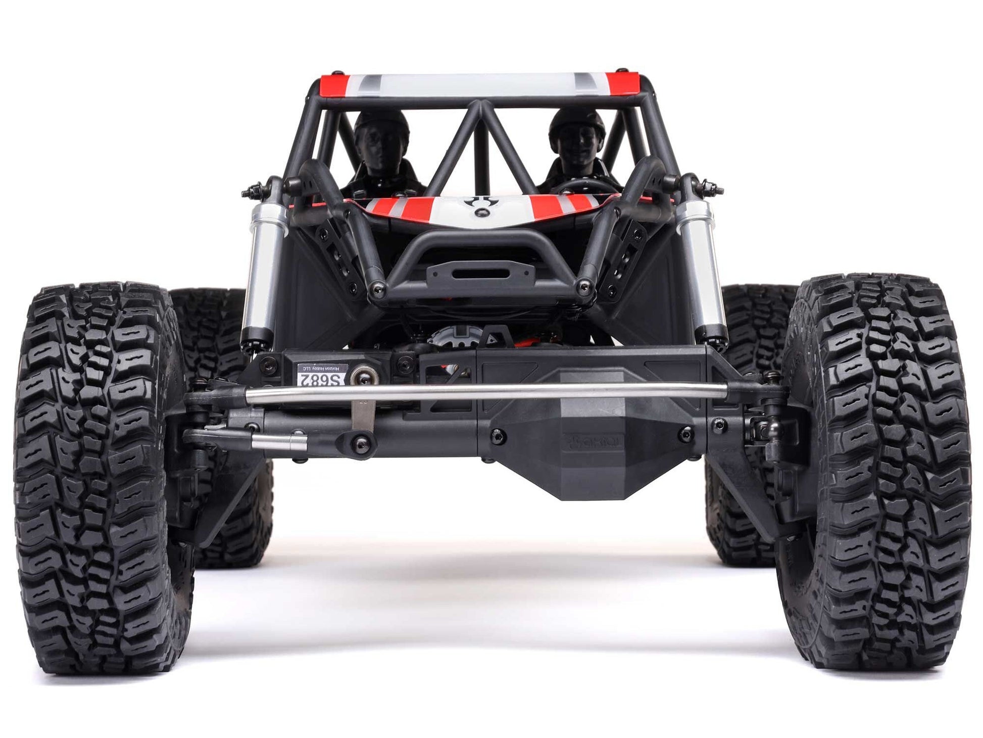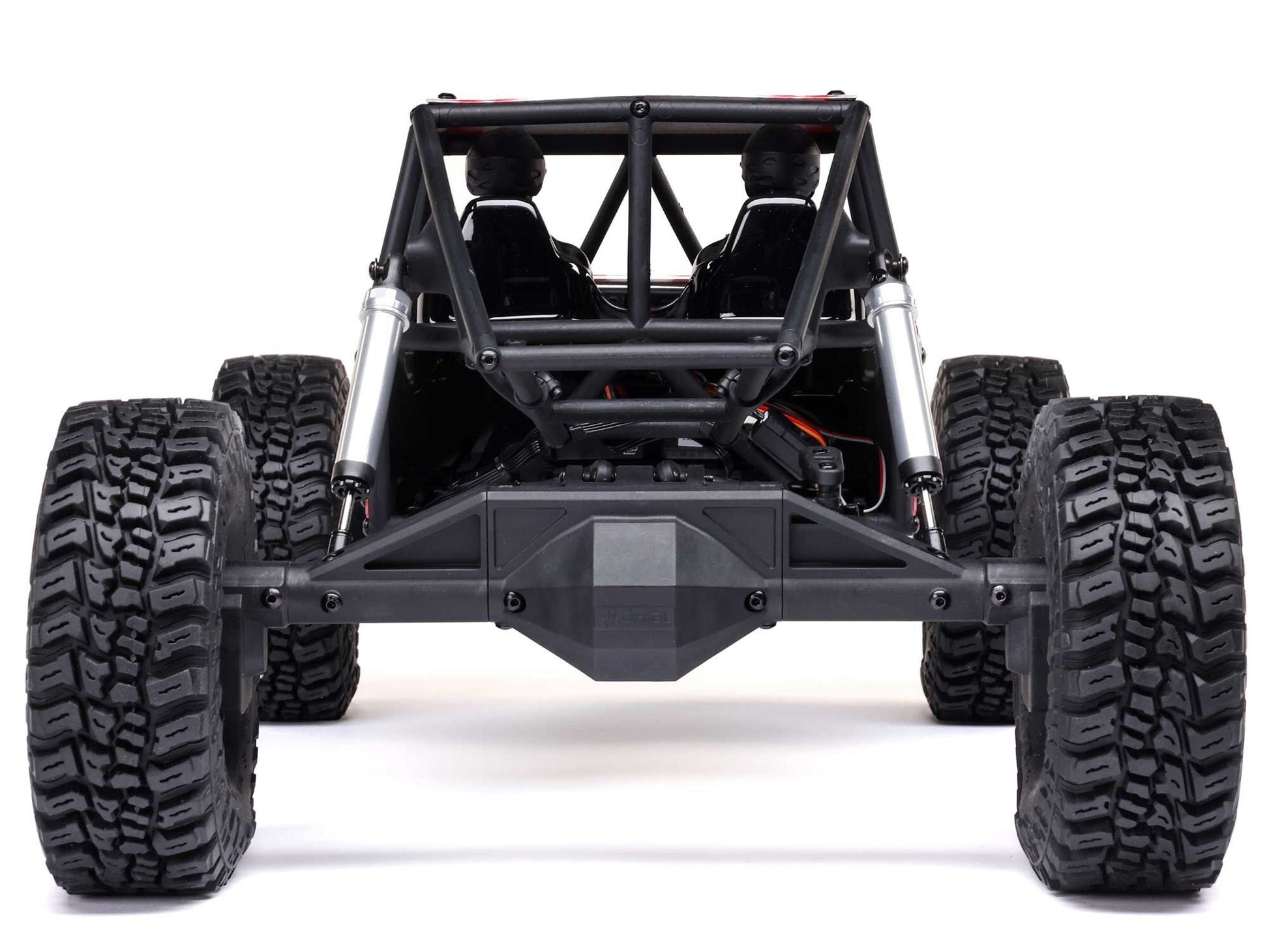 Further improving the rig’s trail performance are the extreme articulation of its 4-link suspension and the additional clearance of its realistic, new IS10 internal spring shocks. An oversized, high torque Axial Boulder 550 21-turn brushed motor sends power through durable, heavy-duty WB12 driveshafts to officially licensed Raceline Avenger wheels and 5.5-inch tall Mickey Thompson Baja Boss M/T tyres. Surrounding it all is a durable composite cage that offers protection and challenge-ready trail buggy looks.