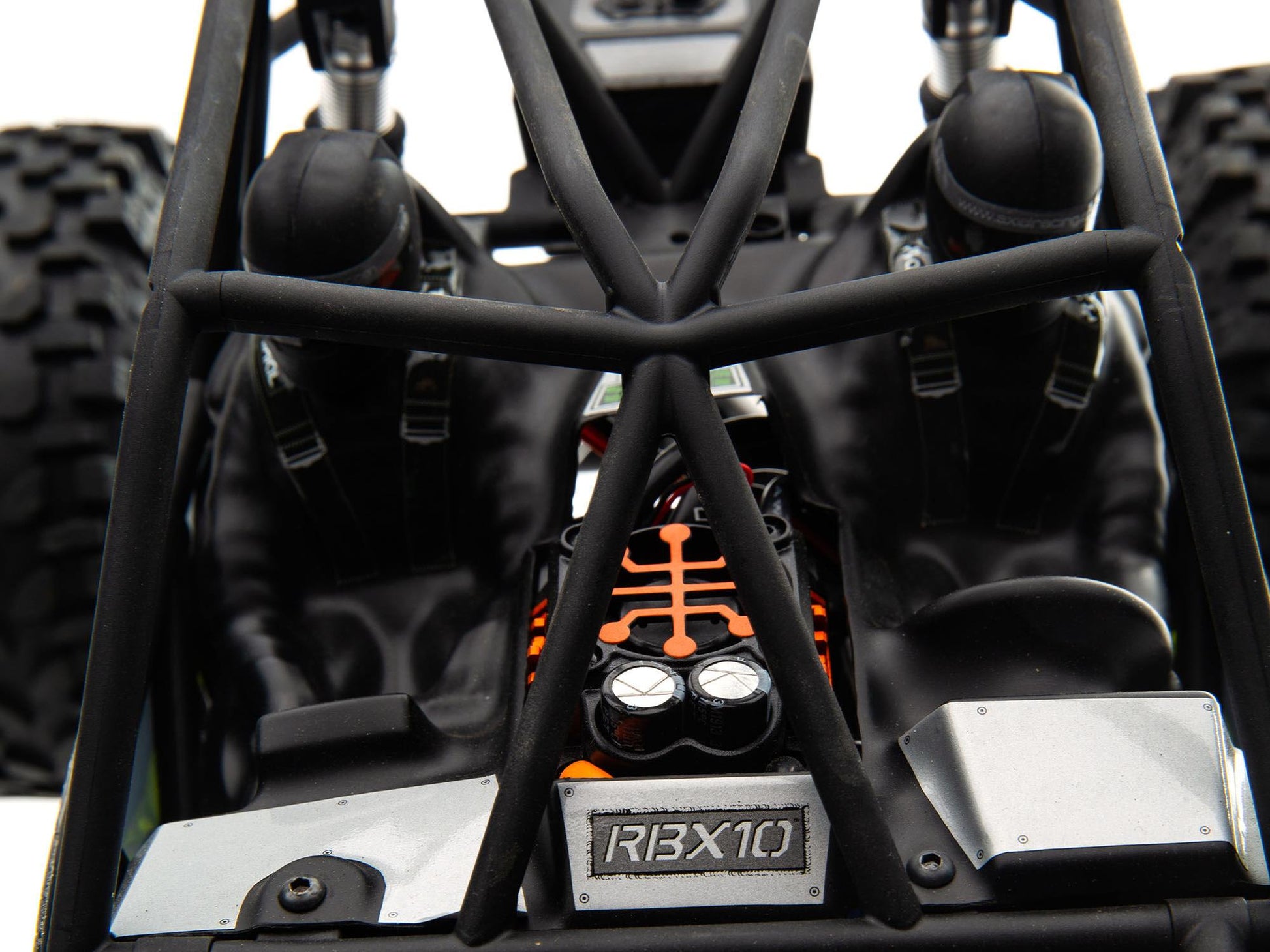 The RBX10™ Ryft™ 4WD's robust, custom tube chassis is engineered from a high-strength composite plastic that withstands the hard knocks of RC off-roading - even while moving at the high speeds produced by a strong powertrain featuring a 4S-capable, 2200Kv brushless motor. Both the front and rear axles boast a durable one-piece, molded plastic, solid axle design and metal differential cover. Licensed Interco TSL Bogger tyres on Raceline wheels, aided by long travel front and rear shocks, do their part to tame wild off-road tracks. These features, along with a full-time 4WD transmission, make the RBX10™ Ryft™ a fun vehicle to send over the trails at full throttle.